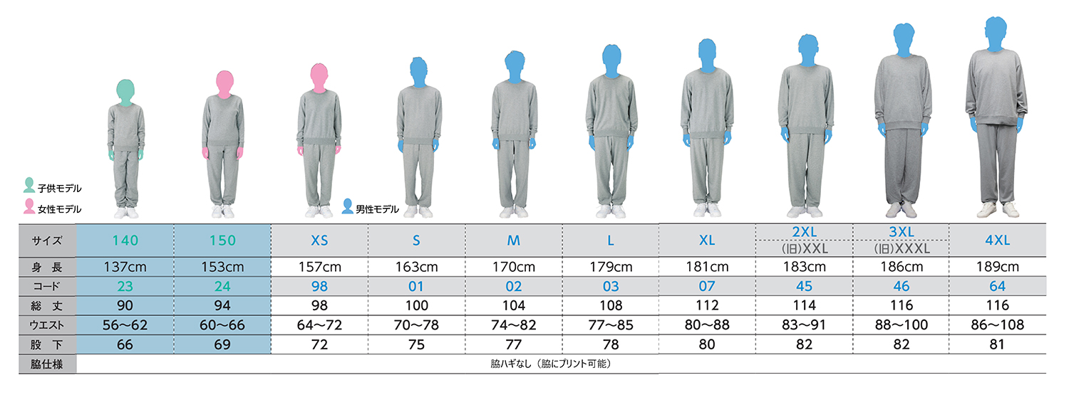 | サイズ | XS,S,M,L,XL,2XL,3XL,4XL |